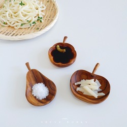Piatto di aceto di legno di Teak solido non verniciato piccolo Design a forma di pera per il servizio di salsa Snack del ristorante