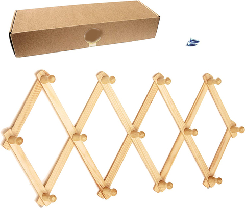Appendiabiti da parete in legno espandibile stile fisarmonica 13 ganci (pioli) cappelli appesi giacche tazza da caffè